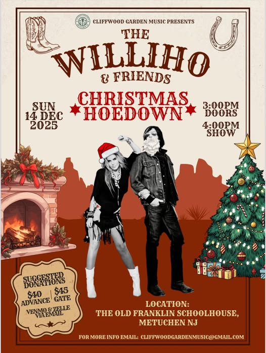 UPCOMING EVENTS Cliffwood Garden Music, Sunday, December 14 Hen Party Fundraiser, Saturday, December 20 Metuchen Open Mic Night - Last Friday of the Month Peter Holsapple, Live at the Old Franklin Schoolhouse MEKONS - two shows, 4 ticket limit per person per show - ON SALE 12/5/25 at 10AM EST PAST EVENTS ARCHIVEjust some of our past events